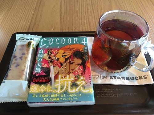 ここでストレートのアールグレイとプロテインバー「チーズ&フルーツ」をオーダー。