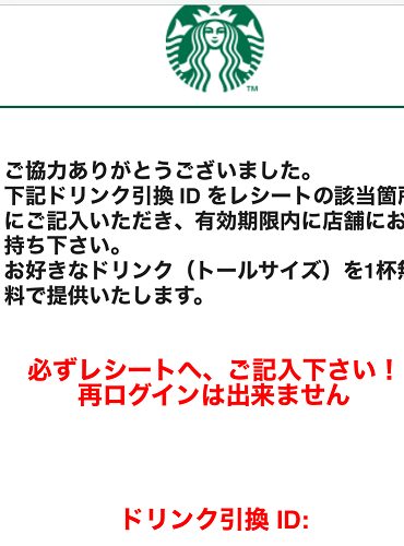 簡単なアンケートに答えて「ドリンク引換ID」をゲット!!
