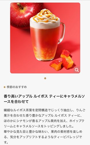 次の店舗では「キャラメルアップルルイボスティー(hot)」をオーダー。