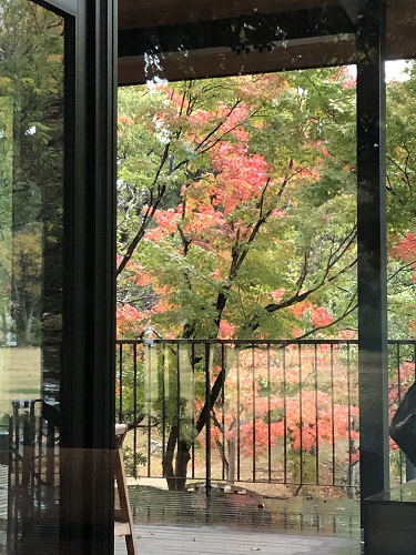 雨じゃなければ外のテラス席で紅葉を見つつのんびりできたよね。