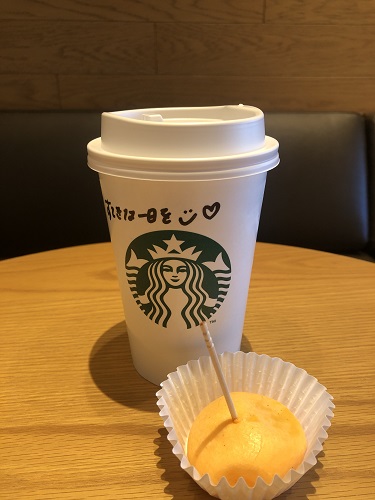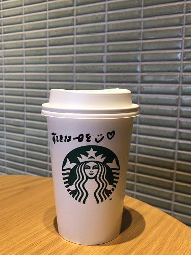 そして受け取ったスターバックスラテのカップにはメッセージが。