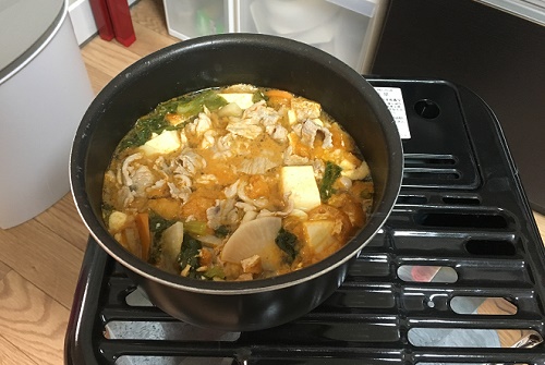 小松菜やニンジンやダイコンを入れてキムチ鍋を作った!!