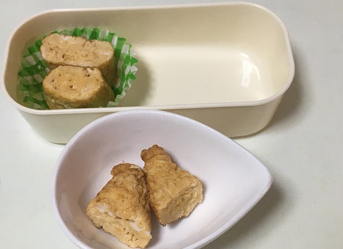 なので、最近では卵焼きの切れ端をお皿に入れて