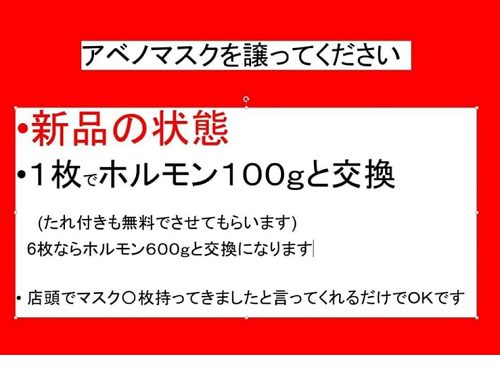 じゃあ、H松市の肉屋さんでマスク一枚につき