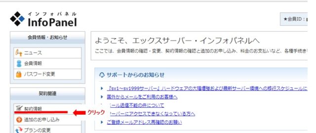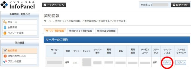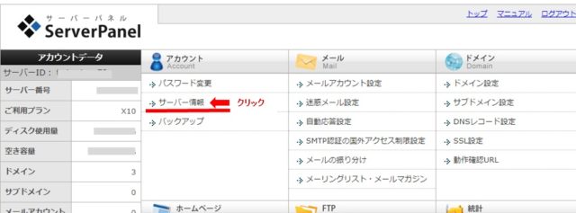 6.Xサーバーのサーバーパネルからサーバー情報をクリック。