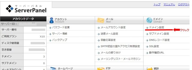 ・ドメインの追加設定(サーバー側:Xサーバーでは「サーバーパネル」)