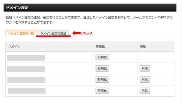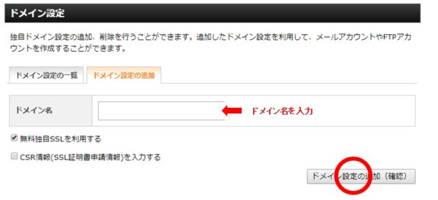 5.追加したいドメイン名を入力し、ドメイン設定の追加をクリック。