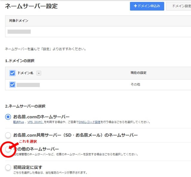 11.ネームサーバの選択をその他のネームサーバーにして、
