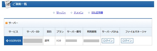 2.インフォパネルの「ご契約一覧」からファイルマネージャーに「ログイン」
