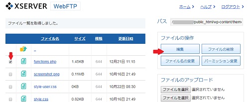 ファイル名→「public_html」→「wp_content」→「thmes」