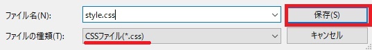 ファイルの種類をCSSファイルに指定し名前を付けてデスクトップ上に保存します。
