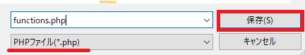 ファイル名を「functions.php」、ファイルの種類を「PHPファイル」にして保存をします。