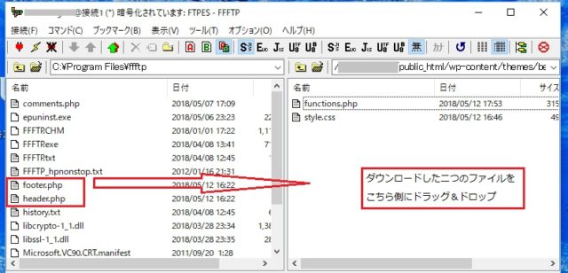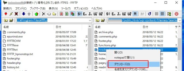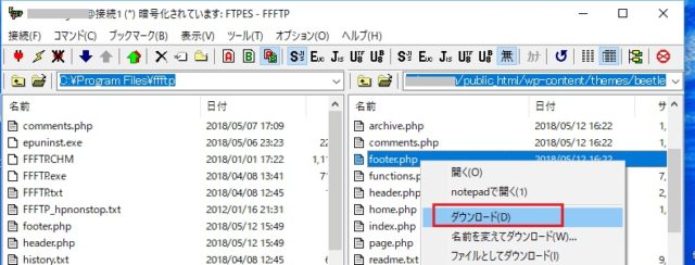 親テーマのフォルダに戻り、それぞれのファイルをダウンロードをします。