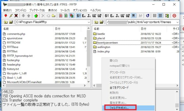 3.子テーマを作成したいフォルダ(beetle)の上で右クリックをして新規フォルダを作成します。