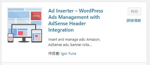 1. プラグイン 「Ad Inserter」をダウンロードして「有効化」します。