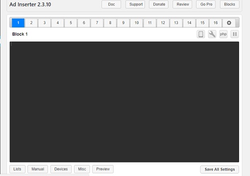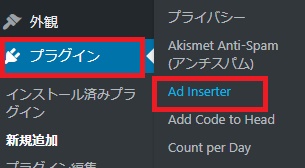 2. ダッシュボードの設定→Ad Inserterから設定画面を開きます。