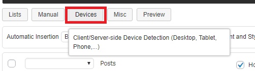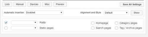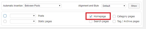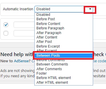 4. Automatic Insertion のプルダウンメニューからBetween Posts を選択します。