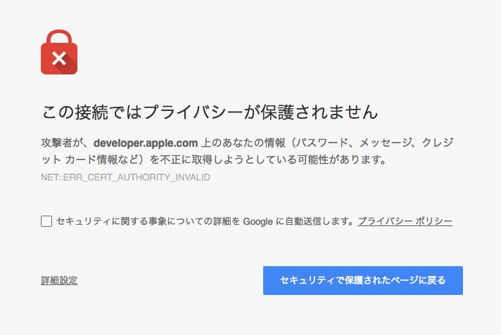https://~ のhttps の部分が赤字で横線2本入っている。