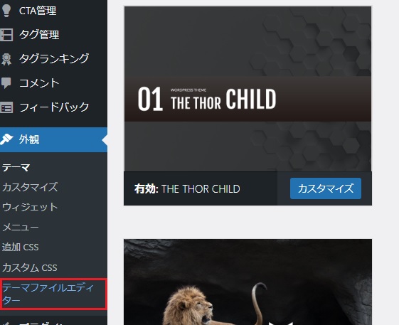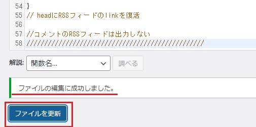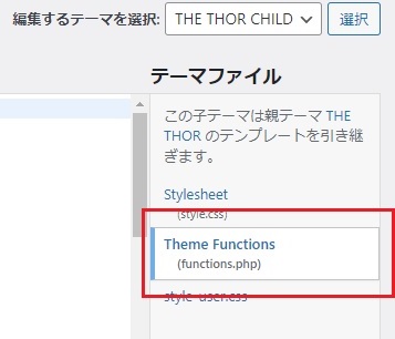 右メニュー「テーマファイル」の「Theme-Functions」を選択。