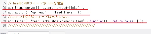 ……「Theme-Functions」の56,57,59の文がエラーになっている。