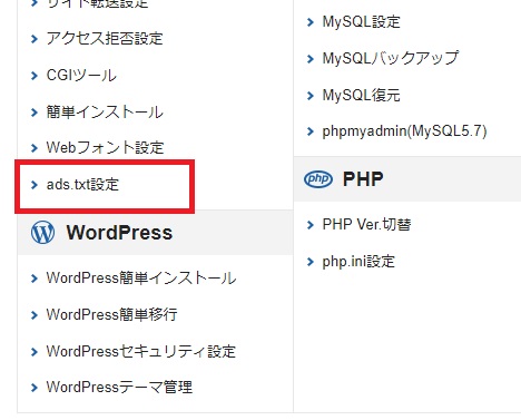1.エックスサーバーにログインし「ads.txt設定」を選択。