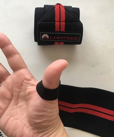 ループを指にかけてぐるぐる巻きつけて手首を固定する。