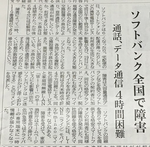 今回の通信障害、いろいろなところで問題が発生したらしい。