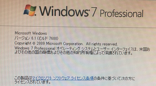 Microsoft Windows NT 6.1.7600.0」と表示が。