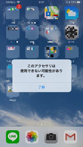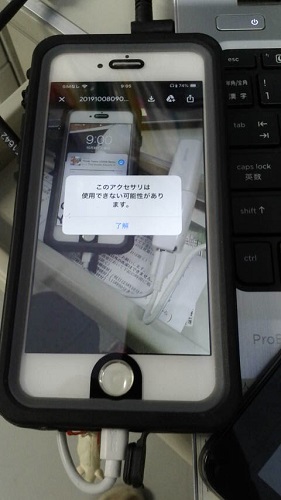 「このアクセサリは使用できない可能性があります」と表示され充電ができない。