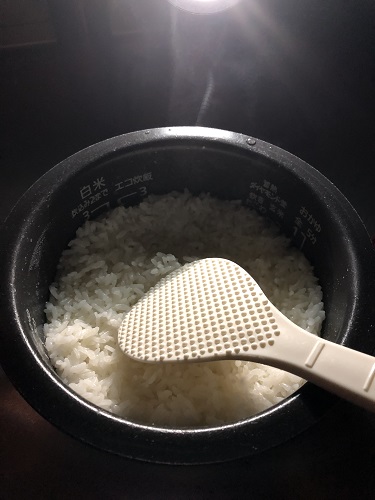 炊飯器のご飯が炊けていたことに気づく。