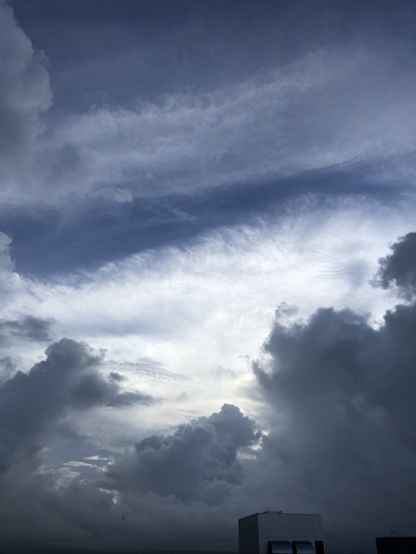 朝、起きて空を見上げると空の色がかなりアヤしい……(滝汗)